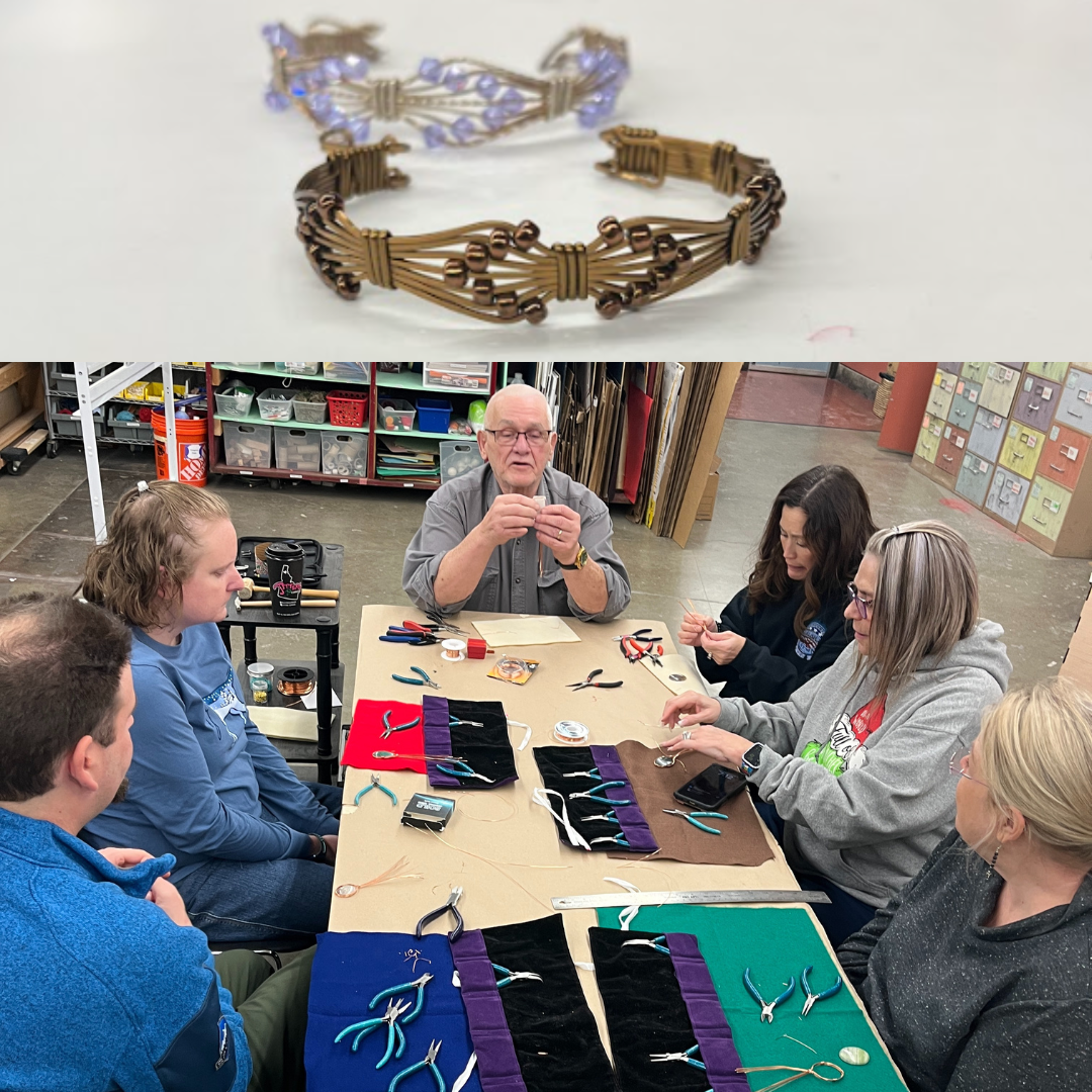 Description: Learn the art of wire wrapping in this fun, one-night workshop! Discover how to form and shape wire into a beaded butterfly bracelet. You'll learn how to form every part of the bracelet out of wire, down to the clasp (an advanced skill!), add decorative embellishments and refine secure wraps and coils. By the end of class, you’ll leave with a finished butterfly bracelet and greater confidence to design and fabricate your own wire jewelry pieces.